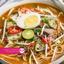 Steamed rice cakes served with rich coconut curry, vegetables, and a medley of spices.