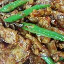 Fried anchovies with spicy dried chili sambal and stinky bean
