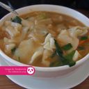 Piping hot soup with chicken and served with handmade pan mee