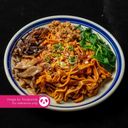 Savor the bold flavors of Dried Chili Pan Mee, where aromatic noodles mingle with a spicy blend of dried chilies, savory seasonings, and a medley of fresh toppings for a delightful culinary experience.