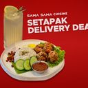 Nasi Kukus, Traditional Fried Chicken Chop, Chef Mama Sambal, Baby Crab, Hard Boiled Egg, Cucumber, Pineapple, Tempeh with Belacan, Peanut