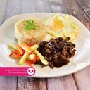 Tender beef slices cooked in aromatic spices served with fluffy steamed rice.