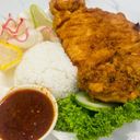 Crispy battered fried chicken, mixed with hot and spicy sambal, served with white rice and traditional salad