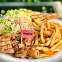 Grilled chicken chop on Sesame buns slathered with homemade Basil Mayo sauce