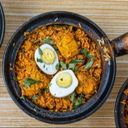 Biryani is a flavorful, mixed rice dish popular in South Asia, typically made with rice, chicken(or vegetables), and spices
