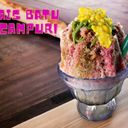 Shaved ice, jellies, syrups, peanuts and beans with ice cream