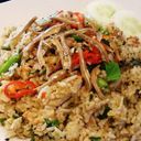 Traditional Malaysian fried rice dish cooked with shallots, garlic, chili, anchovies, and vegetables