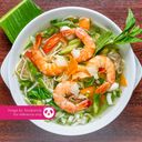 Fragrant rice vermicelli noodle in a classic Thai tom yam broth, a blended of spicy & sour