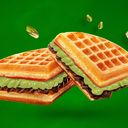 Warm waffle filled with crispy kunafa, rich chocolate spread, and real pistachio spread. Crunchy, nutty, and indulgent in every bite.
