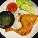 Nasi putih, ayam goreng, sambal, sayur & sup
