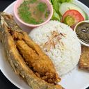 Ikan talapia digoreng rangup dihidang bersama nasi & sambal