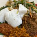 Fragrant rice cooked in coconut milk and pandan leaf Served with fried anchovies, chicken in spoicy rendang gravy, sliced cucumber and boiled egg