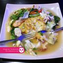 Hot & sour thai soup with mixed vegetables, prawns, squid, crab and mussels