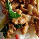 Rice topped with creamy pork