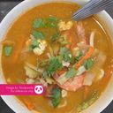 Spicy noodle soup with fragrant herbs, fresh vegetables, and a hint of citrus zest.