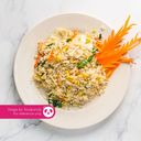 Deep-fried marinated chicken topped with carrots, long beans, cauliflower & sliced red chillies. Served with fried rice cooked with mixed vegetables & sliced cucumbers