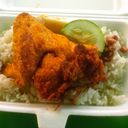 Fragrant rice cooked in coconut milk, served with chicken in spicy tomato sauce and other condiments