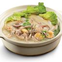 Tender pork tripe simmered with rice into a smooth, comforting porridge, offering rich flavor & soothing warmth 鲜嫩猪肚与米粥慢熬成绵滑口感,香浓暖胃、滋味醇厚。
