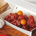Fried boneless chicken coated with a Sweet & Spicy sauce (1 pax) and topped with fried sweet potato balls