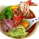 Rice noodles in spicy fish broth, salad leaves, chillies, onions and black shrimp paste