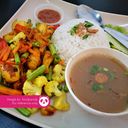 Deep-fried chicken pcs with long beans, carrots & onions. Served with fried rice, sambal & soy sauce