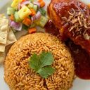 Nasi tomato + Ayam Merah + Daging hitam +Sayur + Papadom