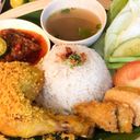 Nasi Goreng bersama Ayam Penyet dan ulam ulaman