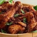 Crispy fried chicken marinated in aromatic spices, served with a side of tangy dipping sauce.
