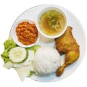 Ayam 1/4 sambal crispy nasi tauhu tempe sup kobis dan timun