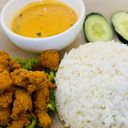 Steamed white rice served with crispy fried chicken coated in rich, creamy buttermilk sauce, infused with fragrant curry leaves and a hint of chili for a perfect balance of flavour.
