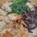 Noodle, Minced meat ball, fungus, mani cai, ikan bilis.