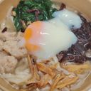 Noodle, Minced meat ball, fungus, mani cai, Egg x2, ikan bilis.