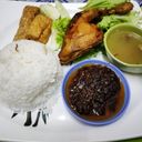 White rice served with deep-fried chicken with very spicy shrimp paste