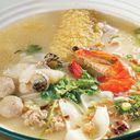A nostalgic bowl of traditional comfort and natural sweetness.Fresh fish bones are gently simmered with ginger, garlic, and dried flounder to create a rich, milky broth bursting with umami flavor. 一碗充满古早味香气的传统好汤。 精选新鲜鱼骨,以姜片、蒜头、大地鱼与慢火熬煮数小时,汤色乳白、鲜香浓郁。
