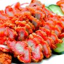 Pork in a sweet and tangy sauce with a savory flavor. For reference only.