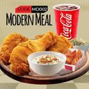 2 Pcs fried chicken, 1 coleslaw, 1 bubur ayam, 1 carbonated beverage & 1 potato wedges