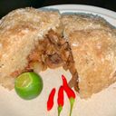 Fried rice with a savory flavor, wrapped in an egg. For reference only.