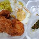 Nasi putih yang dihidangkan dengan ayam goreng, sayur campur & sambal hijo mixed merah