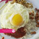 Fragrant coconut rice served with a perfectly cooked egg, spicy sambal, and crunchy accompaniments.