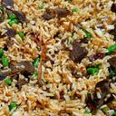 Stir-fried rice cooked with beef pieces, herbs & spices