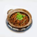 Savory claypot rice with tender chicken and a medley of fresh vegetables, bursting with flavor.