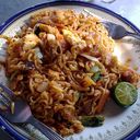 Fragrant fried rice with spices, vegetables, and a choice of chicken or seafood, topped with egg.