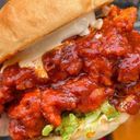 A Burger With Crispy Chicken With Authenthic Spicy Korean BBQ Sauce and Mayo Sauce