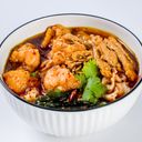 虾滑,炸腐竹,蔬菜,海带,青葱,炸葱,芫荽,白芝麻。Shrimp Paste,Fried Fu Zhu,Vegetable,Wakame,Spring Onion,Fried Onion,Coriander,White Sesame.