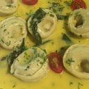 Handmade tortelini stuffed with porcini, button mushroom, smoked duck, mascarpone and Parmesan cheese with fresh sage butter and truffle oil
