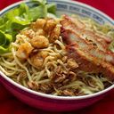 A03. Wan Tan Mee: Egg noodles with succulent wontons, char siu, and savory soy-based sauce.