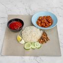 Aromatic rice cooked and steamed with original coconut milk. Served with our own made special sambal, cucumber slice, anchovies and egg.