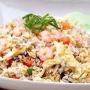 Fragrant fried rice with shrimp, chicken, vegetables, and a hint of soy sauce delight.