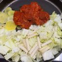 Dakgalbi no vege no tebbokki. So different from eating at shop. The chicken size all small break pieces.