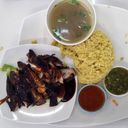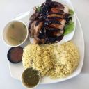 Aromatic rice cooked with chicken stock and served with roasted chicken, chili sauce, soy sauce, soup and sliced cucumbers